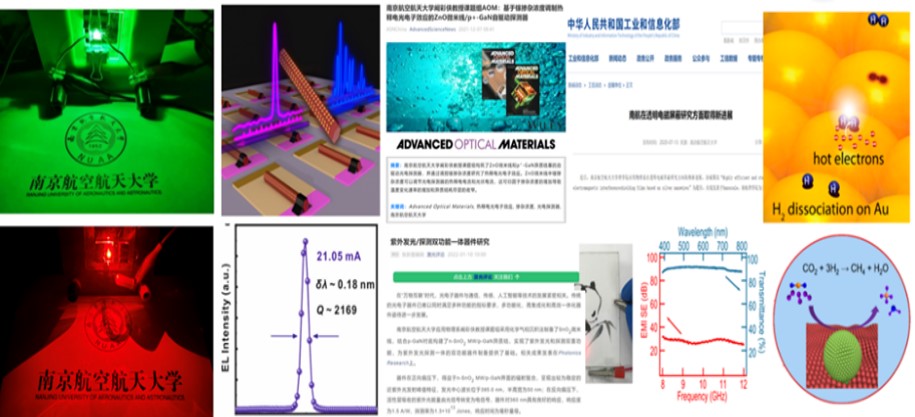 “光电功能材料、器件与物理”团队的研究工作主要集中在等离激元纳米结构制备、半导体微纳结构生长、微纳发光器件研制、高性能光电探测器及隐身材料等方面。以航空和国防需求为导向,同时兼顾科学前沿领域的探索。紧紧围绕宽禁带半导体和贵金属低维纳米结构开展工作,从低维纳米材料可控生长、到光电性能调控,再到微纳光电器件制备和应用,形成了“材料生长-性能优化-器件制备与应用”的研究思路。