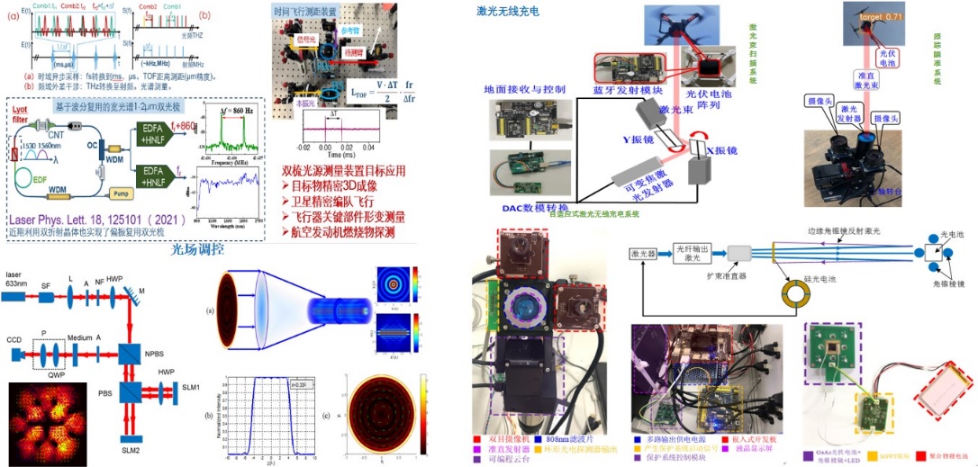 激光技术与应用课题组围绕超快激光技术、光场调控技术、激光传能技术、集成光子等开展基础及应用研究。超快激光技术研究超短脉冲飞秒激光器及其在精密光谱、微波光子学、多光子成像、超灵敏探测等领域的应用;光场调控技术研究新型结构光场生成、调控、传输、聚焦及在成像与通信等领域的应用;激光传能技术研究激光对运动目标充电过程中的发射、瞄准、跟踪、传输、接收及传能系统的能量管理、安全性保障及优化;集成光子学基于PT对称破缺研究光波导和光学微腔中的新型集成光子器件及相关光学效应和应用。