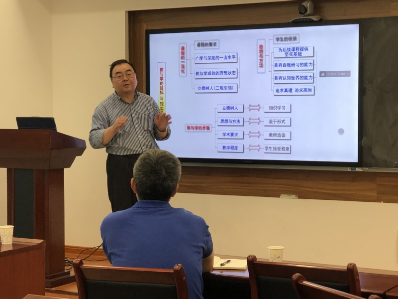 报告会上,谢教授从教与学的目标与现实矛盾出发,探讨课程的一流化、教与学的矛盾、思想与方法等问题。并以微积分的课程知识体系为切入点,将辩证唯物主义课程思政元素、三观引领三全育人等理念融入微积分的教学过程中,他提出“内容方法化、做法思想化、学习通识化”的教学研究与实践经验,为老师们的授课教学提供了宝贵的经验。报告结束之后,谢教授与老师们进行深刻交流,为学院的课程建设提供了意见和建议。