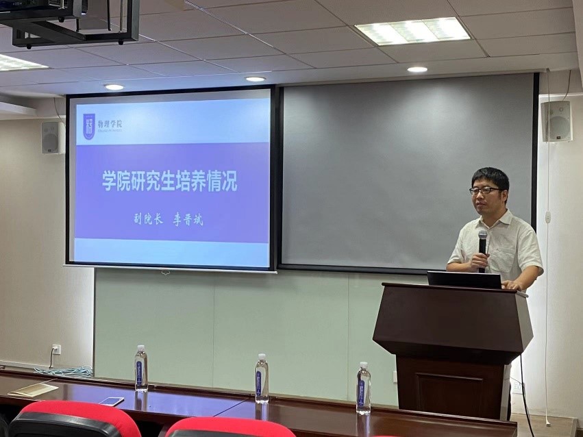 在研究生新生见面会上,副院长李晋斌向学院52名研究生新生表达了祝贺和欢迎,希望同学们尽快适应研究生阶段的学习生活,首先要学会独立思考、主动沟通,独立自主的学习探索是基础,学会团结包容,和导师、同学交流分享、共同攻关是关键,其次做基础学科研究,既要有国际视野,还要有交叉思维,需要开阔眼界、关注国际前沿动态,多和应用研究交叉,不断探索创新,最后要劳逸结合,强健的体魄是做好科研的基础。