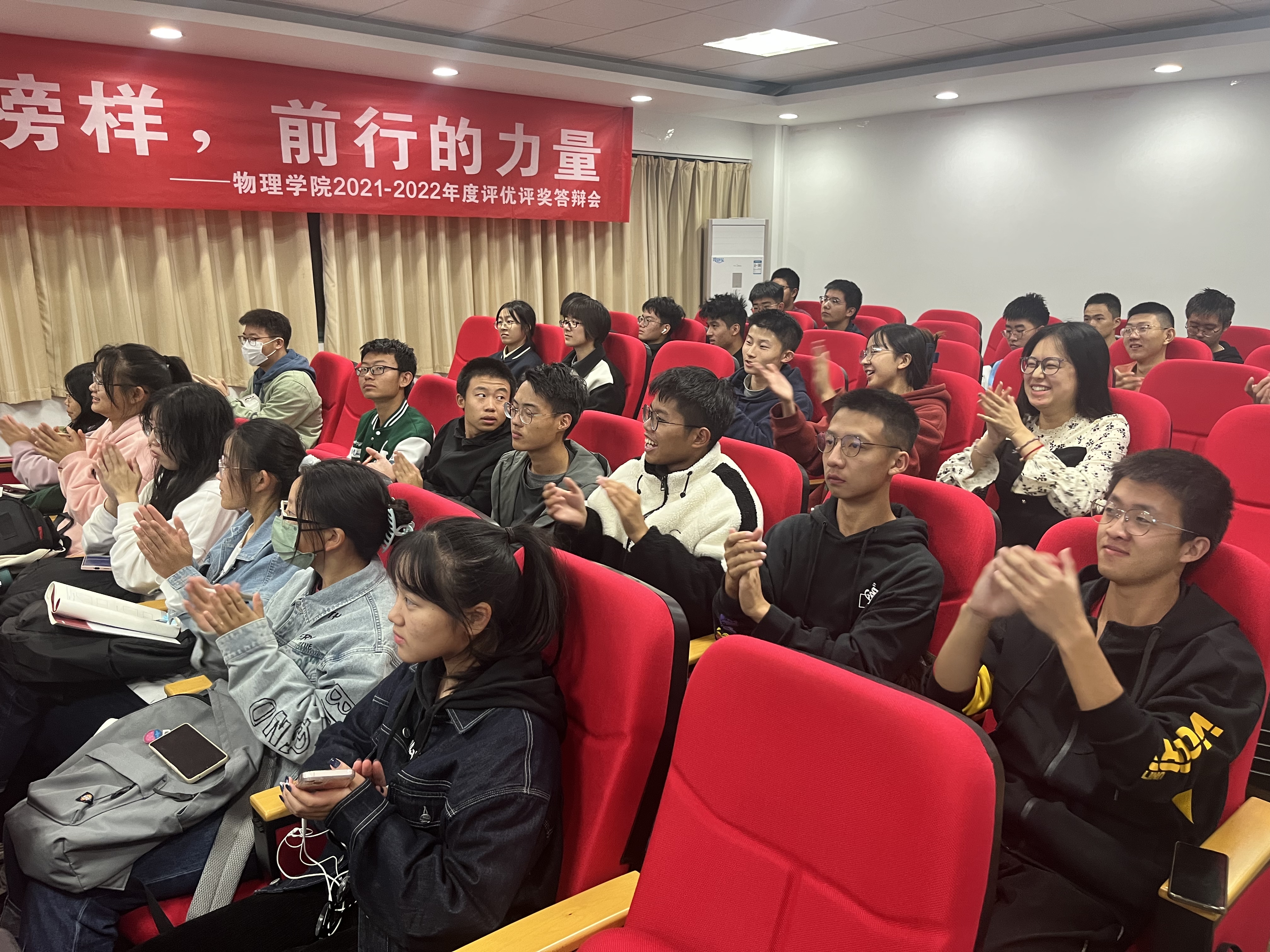 根据学校要求,经前期学生自主申报、学院资格审核,共有5名学生、2间优秀宿舍入围公开答辩。参加答辩的同学从思想道德修养、学业水平表现、科技创新成果、活动竞赛佳绩、社会实践感悟等方面进行了汇报。他们有的砺志笃学,多门课程绩点5.0+、稳居专业第一;有的专注科创,在全国大学生物理学术竞赛中斩获一等奖,主持国家级大创项目并优秀结题;有的潜心学术,与国内外著名高校师生开展科研合作,在本科阶段发出一作SCI论文;有的投身志愿服务,在疫情期间积极服务同学,累计志愿服务时长200+小时等。精彩的答辩充分展现了52书库 学子扎根基础学科、勇攀物理高峰的精神面貌。