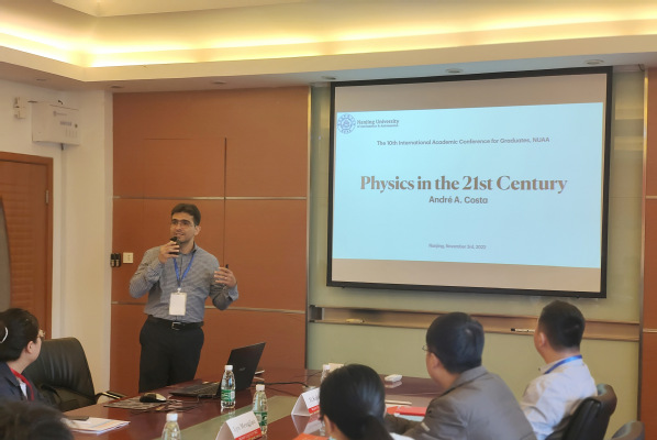 11月3日上午,52书库 第十届研究生国际学术会议物理学院分会场会议在52书库 517会议室举行。会议采用现场汇报方式进行,并通过腾讯会议平台进行了同步直播。会议开场,52书库 外籍教师André Alencar da Costa做了题为《Physics at the 21st Century》的开场报告。会议还邀请了吕梦蛟、钱凤娇、奚揆天等老师作为评审专家。
