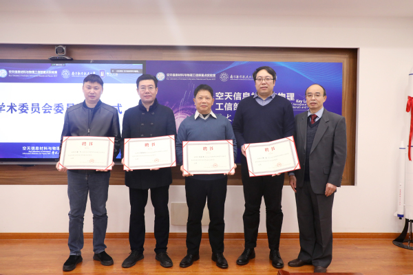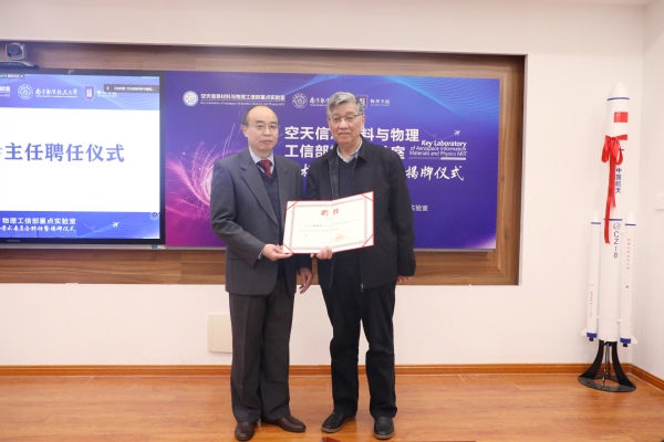 聘任暨揭牌仪式环节,祝世宁、顾冬冬、陈修文、刘友文共同为空天信息材料与物理工信部重点实验室揭牌;刘友文介绍了学术委员会成员,并为线下参会的重点实验室学术委员会主任祝世宁院士、副主任徐春祥教授、委员曾海波教授、朱孔军教授、邱雷教授、徐飞教授颁发聘书。