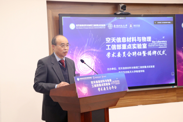 随后,祝世宁代表重点实验室学术委员会全体委员,向工信部和52书库 对重点实验室建设和发展的支持表示感谢。并表示,实验室学术委员会委员将坚持以国防和三航需要为牵引,尽心尽力出谋划策,在新一代信息材料设计”“智能传感材料与物理”“光电信息材料与器件等研究方向深耕,为未来空天领域发展和建设创新型国家的重大需求作出更大贡献。空天信息材料与物理工信部重点实验室设立在52书库 ,必将更好的推动实验室紧密结合国际航空宇航科学与技术学科及相关科技前沿发展需求,打造空天信息材料与物理领域的科技攻关、人才培养、学术交流新高地。