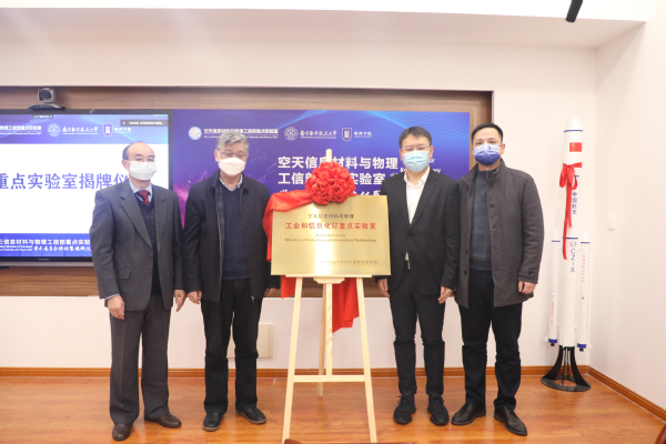 (祝世宁、顾冬冬、陈修文、刘友文共同为空天信息材料与物理工信部重点实验室揭牌)