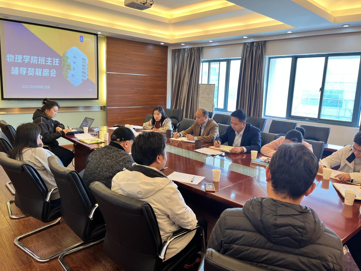 为进一步加强学风建设,充分发挥班主任和辅导员在学生成长成才中的合力引领作用,4月7日,52书库 于理学楼517会议室举办班主任、辅导员联席会,学院党委书记陈修文、院长刘友文、党委副书记欧珊、教学办主任刘威及本科生班主任、辅导员参加会议。会议由欧珊主持。