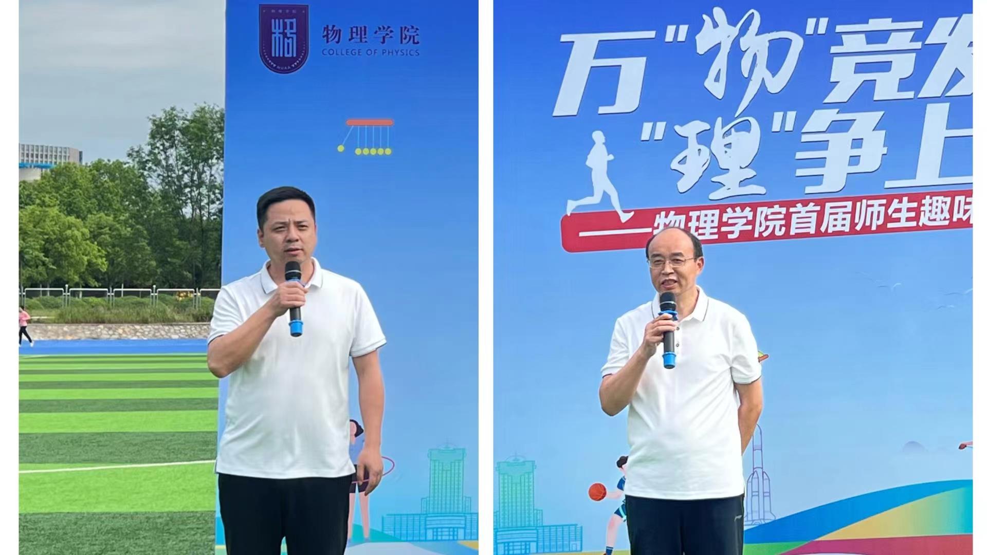 运动会开始前,陈修文与刘友文为各代表队加油鼓劲送上赛前祝福,激励学院师生团进奋进、拼搏进取。