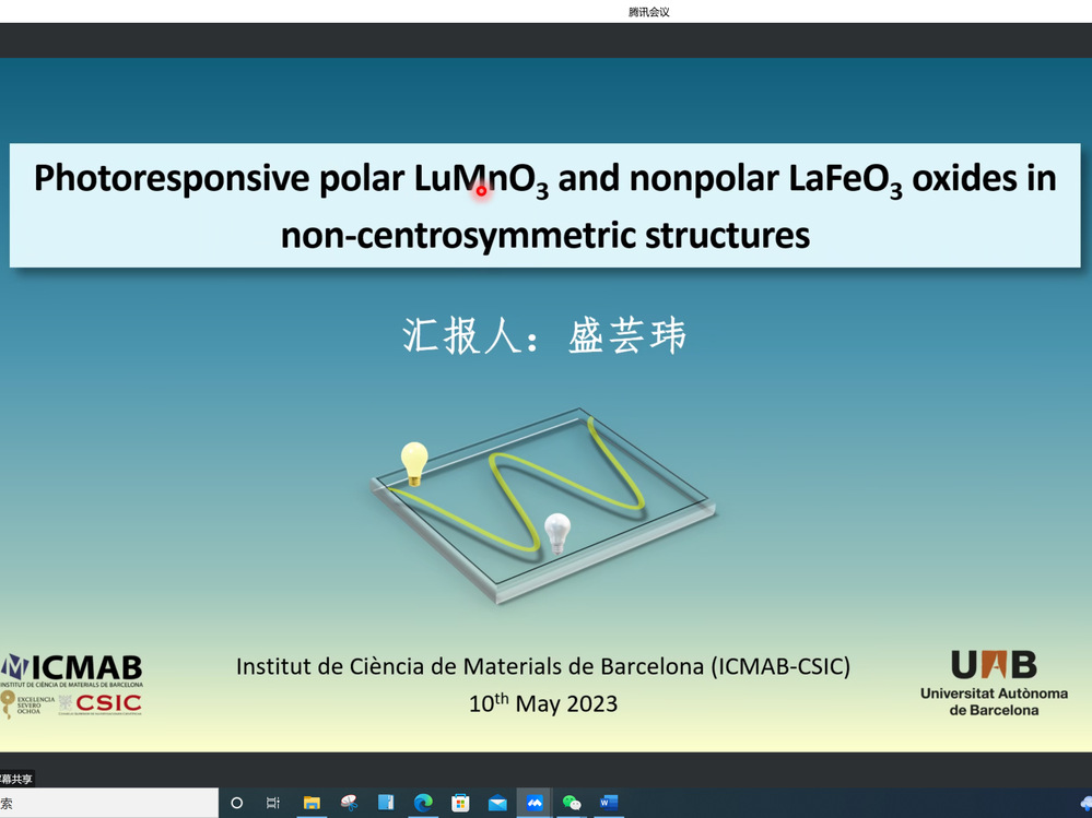 随后,青年学者分别围绕Investigation on quantum resources and their applications、二维原子晶体材料的CVD生长机理及电声耦合性质的第一性原理研究、基于射频原子磁强计的电磁感应成像、基于光纤光栅智能传感器的飞行器结构健康监测技术、钙钛矿薄膜微结构调控与光电器件研究、基于中子衍射技术对铁基超导材料BaFe2Se3的磁结构研、Photoresponsive polar LuMnO3 and nonpolar LaFeO3 oxides in non-centrosymmetric structures进行了学术报告,线上线下同步参与的专家学者们就报告内容进行了深入探讨与交流。