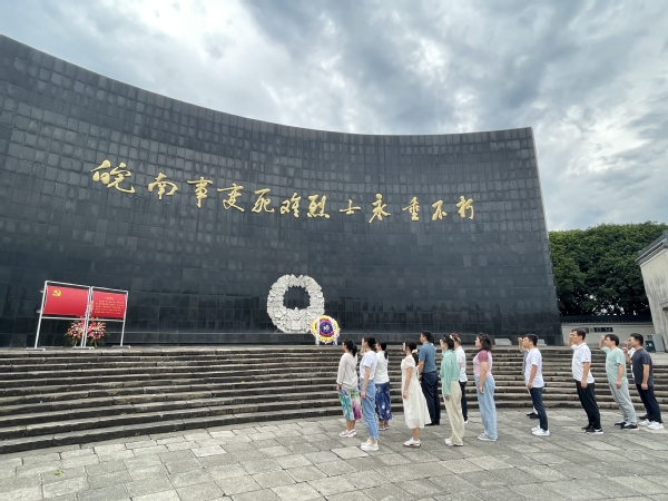 学院一行首先来到皖南事变烈士陵园,在邓小平同志题词的“皖南事变死难烈士永垂不朽”纪念碑前敬献花圈、鞠躬默哀,并在党委副书记欧珊的带领下重温入党誓词。参训人员还追寻先烈足迹,参观了无名烈士墓、题字碑廊。