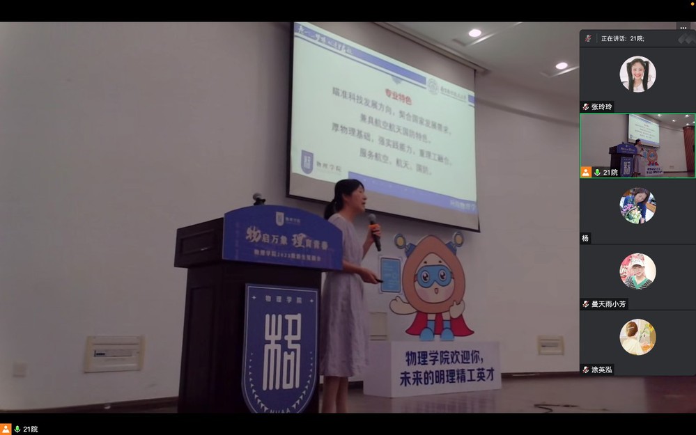 暑假期间,学院组织高年级优秀学生成立“粒子轨道”学导团,定期推出“新上有你·知物由学”系列物理知识科普推文,介绍航空航天、古诗词、科幻电影等领域中蕴藏的物理知识,由浅及深激发新生对于物理学科的学习兴趣。开学前,学院公众号发布了新生数据分析、启明导师荐书、班主任介绍等内容,帮助新生早接触、早适应。学院还邀请家长线上参加见面会,与新生一起了解所学专业,为今后家校协同育人奠定基础。