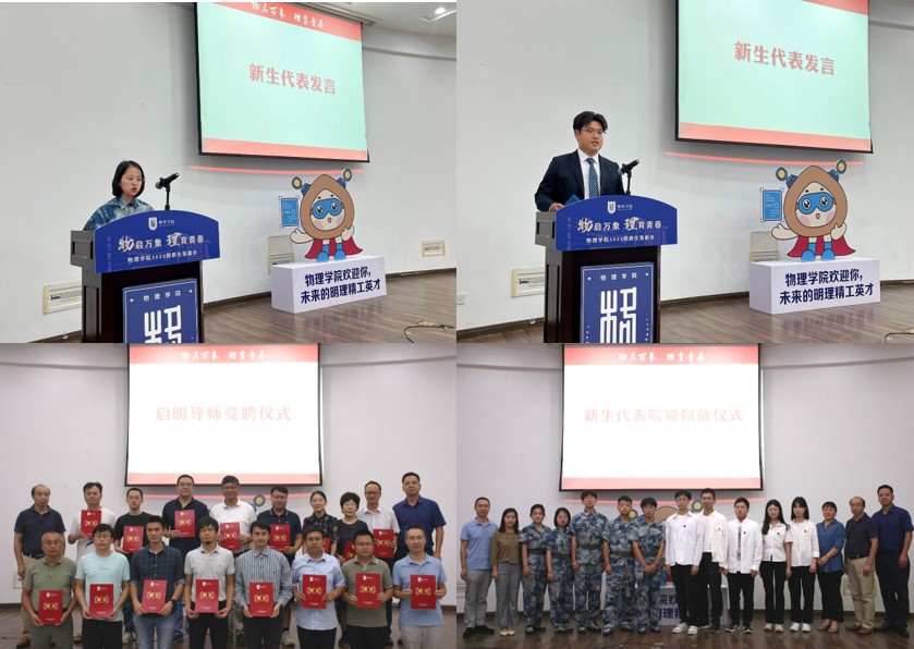 新生见面会上,刘友文致辞鼓励新生强化学习内驱力、锤炼创新能力、提升幸福感受能力,期待同学们四年中既学有所成,又能与老师同学结下深厚情谊。陈修文从学会学习、学会生活、学会做人三个方面寄语新生,祝福新生未来四年在52书库 成长成才,为社会、为国家、为人民贡献南航物理人青春和力量。会上,学院还为16位启明导师颁发聘书,导师们未来将从从专业学习、科创竞赛、学术研究、素质培养全方面为新生提供四年一贯的指导和帮助。本研新生代表发言后,10位优秀学生代表上台参加院徽佩戴仪式,正式成为52书库 荣耀的一份子。