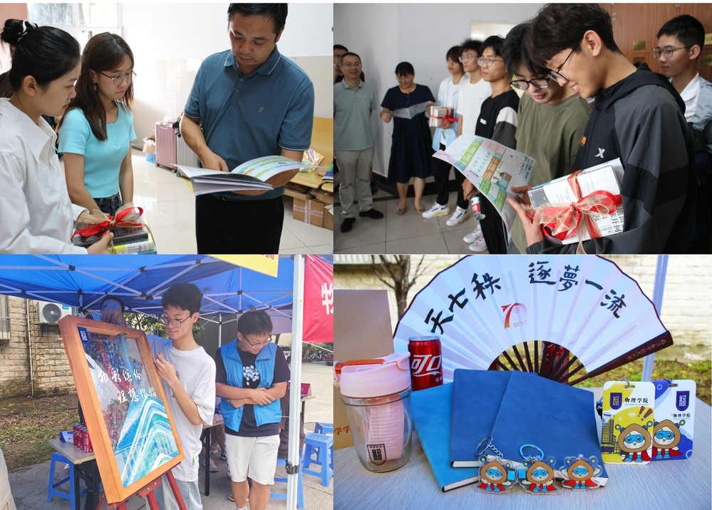 迎新期间,副校长姜斌前来了解报到情况并为新生送上开学祝福,鼓励同学们要尽快适应新环境,珍惜宝贵的学习机会和资源。学院党委书记陈修文、院长刘友文一行走进新生宿舍迎新,为同学们来了涵盖三航文化、物理专业和人文社科等门类的精选书籍,希望新生能够广泛汲取知识,培养独立思考能力和批判精神。新生辅导员于金巧为同学们送上了研究生学长学姐制作的《“小粒子”核心课程闯关地图》,为同学们梳理了本科四年课程的学习脉络、内在逻辑。