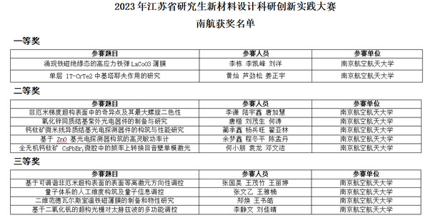 学院高度重视研究生的科创实践活动,依托各科研团队,为学生提供科创平台和资源支持,积极鼓励学生参与各类学术竞赛、支持学生参与各类学术论坛、申报创新项目。在学院的支持下,2023年学院共获批省级、校级科研与实践创新计划项目共16项,立项数量创历史新高;学生在第二十届江苏省高校大学生物理与实验科技作品创新竞赛(研究生赛道)、校天宫杯、全国研究生数学建模等竞赛的成绩方面也有所突破。