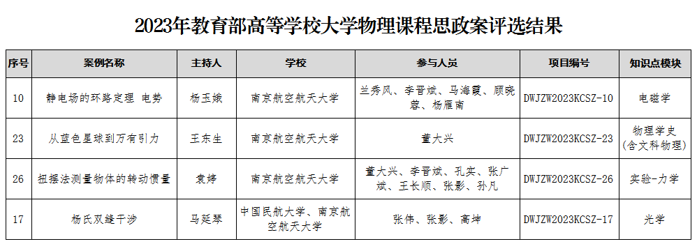 为推动“大学物理”和“大学物理实验”课程的课程思政建设,提高课程思政案例的建设水平,教育部高等学校大学物理课程教学指导委员会课程思政工作委员会在教育部高等学校大学物理课程教学指导委员会的指导下,于2023年6月启动了“大学物理”和“大学物理实验”课程思政案例遴选工作。经过课程思政工作委员会专家的评审,从120个案例中遴选出了42个优秀案例,并予以立项。