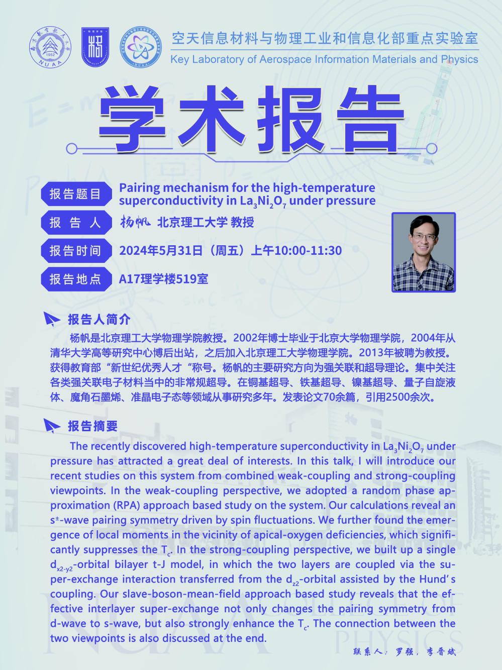 审核:Pairing mechanism for the high-temperature superconductivity in La3Ni2O7 under pressure