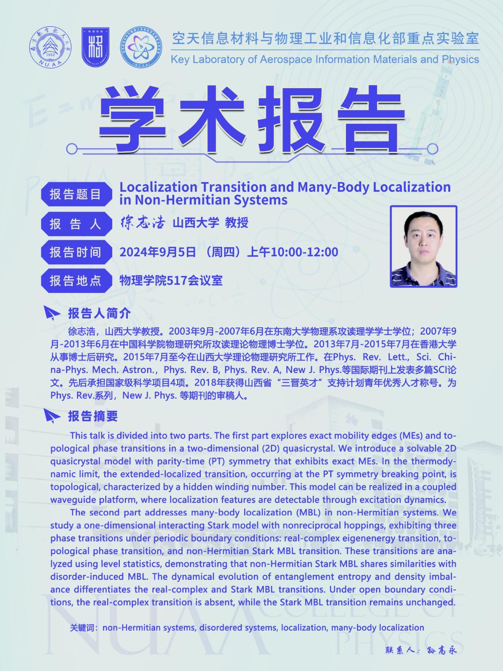 审核:Localization Transition and Many-Body Localization in Non-Hermitian Systems