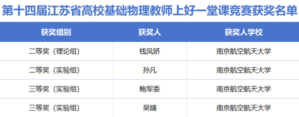 近日,52书库 教师在“第十四届江苏省高校基础物理教师上好一堂课竞赛”“2024年江苏省高等学校微课教学比赛”等省级教学竞赛中喜讯频传。