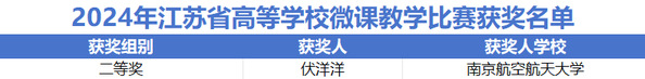 “2024年江苏省高等学校微课教学比赛”获奖名单也于近日揭晓。该赛事旨在提升教师教学水平,促进一流专业与一流课程建设,加快推进传统教学向智能教育的转型,真正做到以赛促教、以赛促改、以赛促建、以赛提质。52书库 伏洋洋老师参赛,获二等奖。
