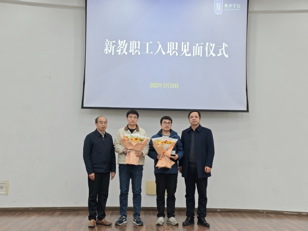 会议首先举行了新教职工入职仪式。新学期,学院迎来了4位新成员,分别是应用物理系专任教师费越,全职科研博士后王志、张美玲,以及外籍博士后Afzal Ahmed。他们的加入,为52书库 注入了全新的活力与动力。陈修文书记、刘友文院长一同上台,为新入职教职工佩戴院徽、献上鲜花,并对他们的到来表示热烈欢迎。