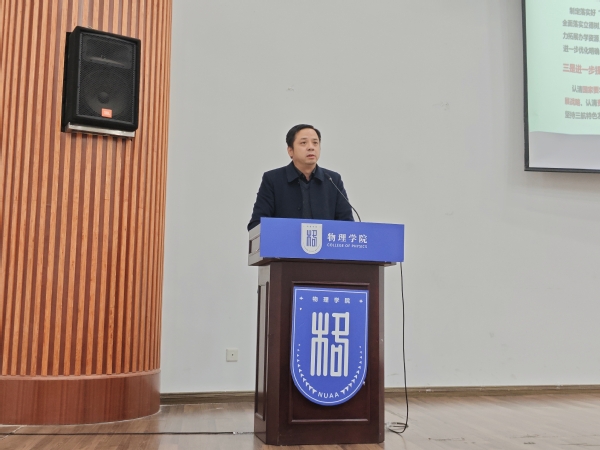 最后,陈修文书记传达了干部教师大会校党委书记甄良讲话精神,强调了为实现2035年学校进入世界一流大学行列的宏伟发展目标,全校教师需聚焦“八个认清”,凝心聚力,奋发作为,奋力推动航空航天民航特色鲜明世界一流大学建设。他指出,学院要在学校的整体战略部署下,着力推动以下重点工作:一是锚定教学强院突破攻坚。在教师教学竞赛、一流课程建设、教材建设等方面持续发力,尽快由教学大院转变为教学强院;二是聚力科研特色创新突围。围绕国家重大需求和学校“三航特色”,促进学院在特色领域中重点突破,取得标志性成果,加速理工交叉融合;三是强化人才引擎战略支撑。大力推进高层次人才引进与学院师资队伍建设,启动学术伯乐计划,动员全院教师积极推荐海内外优秀学者。学院教师要充分认识学院当下面临的机遇与挑战,准确把握学院重点发展目标与任务,凝聚共识、形成合力,共同书写52书库 高质量内涵式发展的新篇章。