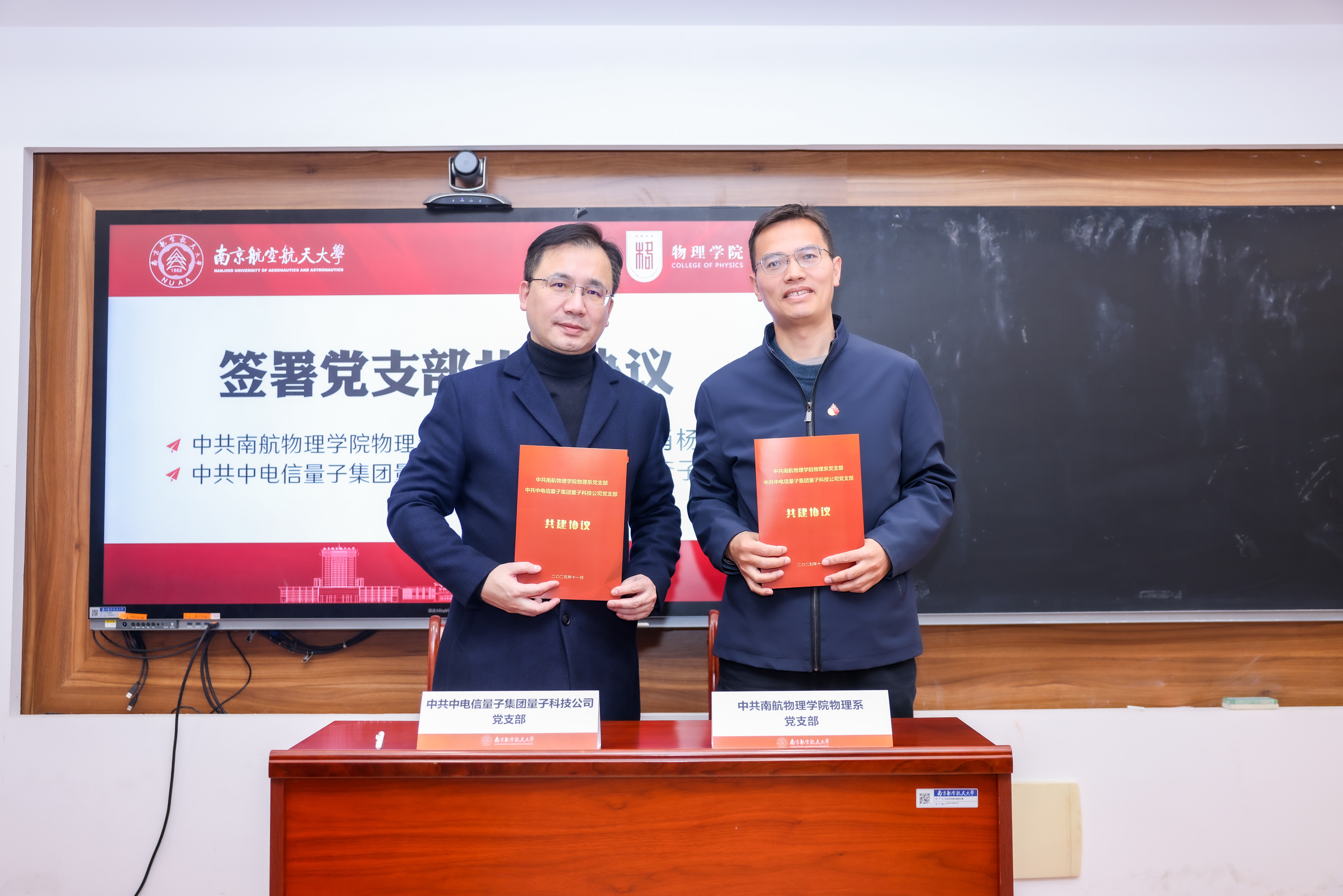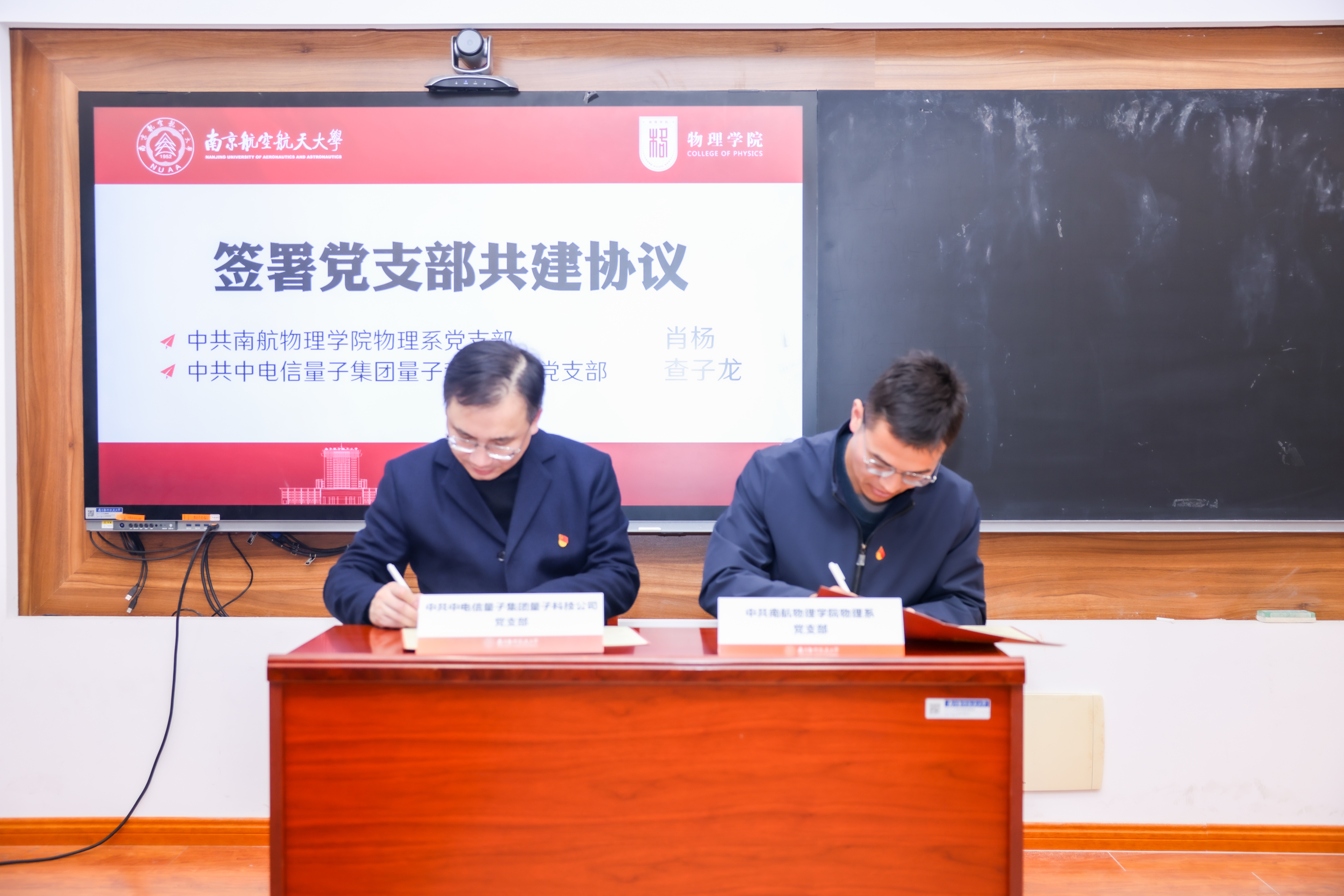 会上,双方还正式签署两项协议。52书库 党委书记陈修文与中电信量子集团苏赣区域支撑中心总经理鞠峰代表校企双方签署战略合作协议,约定在科研合作与技术攻关、人才培养与基地建设、学术交流与科研活动、联合攻关与成果转化、学科建设等方面开展协同创新。52书库 物理系党支部书记肖杨与中电信量子集团量子科技公司党支部代表查子龙签署党支部共建协议,确立以党建引领产学研资源整合、人才联合培养的合作模式。