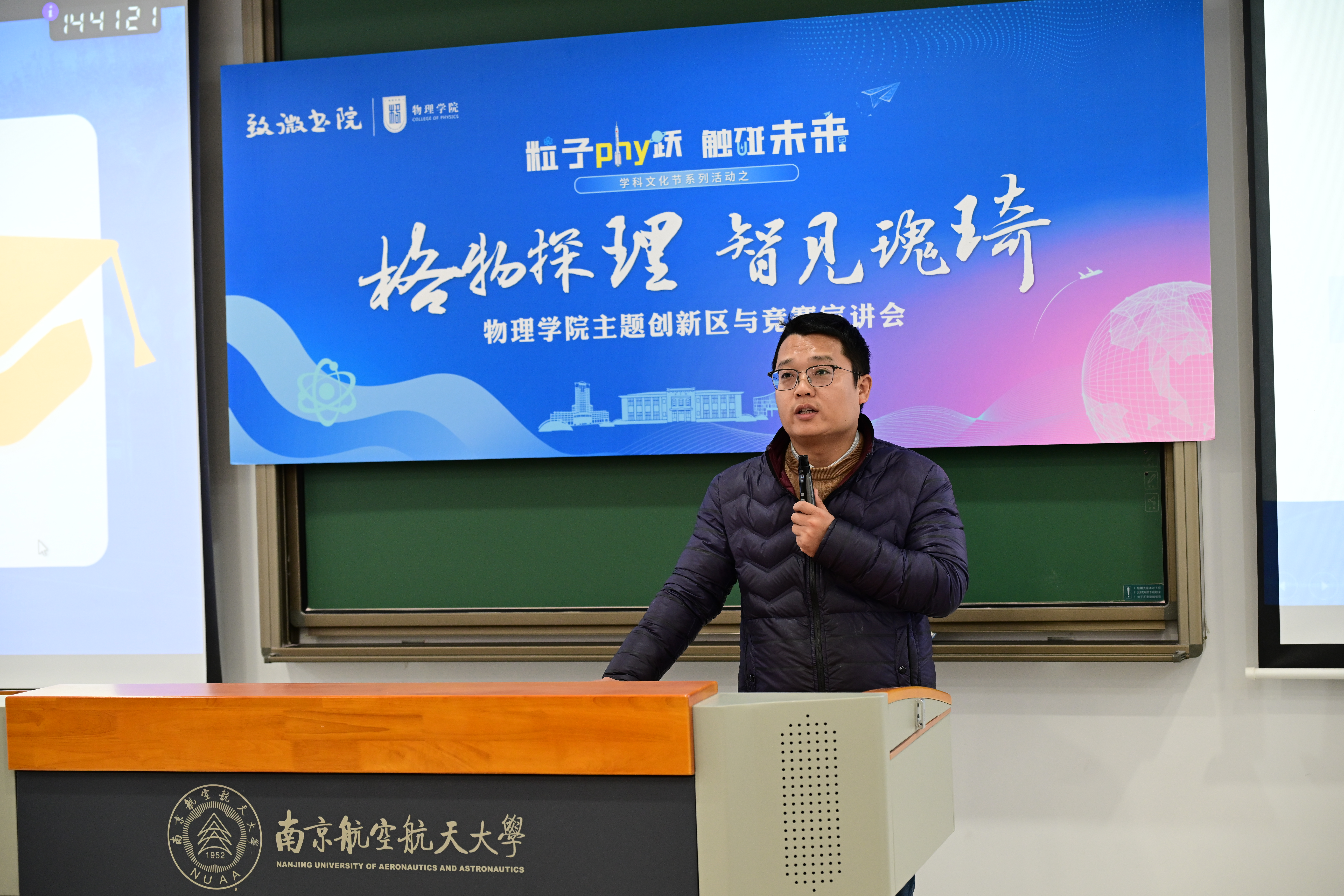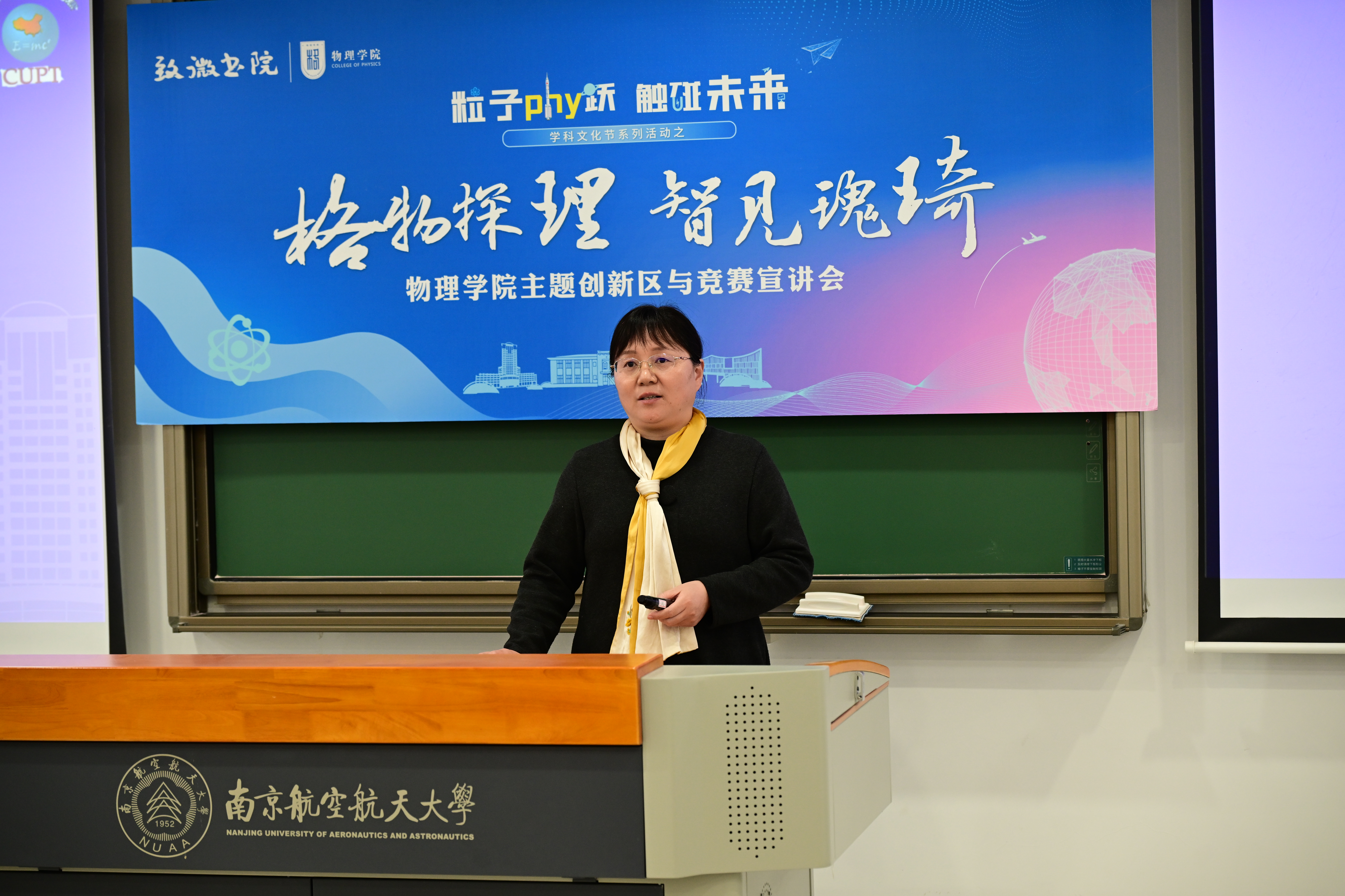 第四届“启智逐梦,智汇青春”天目湖校区大学生科创节于近日盛大开幕,为激发同学的科研兴趣,助力大一同学及时了解52书库 主题创新区情况,掌握四大学科竞赛核心信息,顺利开启科创征程,52书库 联合致微书院于12月2日在天目湖校区举办主题创新区与物理竞赛专场宣讲会。牧星学院致微书院院长文杰、52书库 副院长阚彩侠及学院100余名师生参加本次活动。活动由52书库 教务员杨一冉主持。