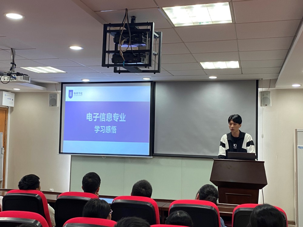 在研究生朋辈经验交流环节,物理学专业2018级博士生、2021年国家奖学金获得者徐娟面向新生作经验交流分享,结合自己的求学经历向学弟学妹们传授了科研学习经验,建议大家要做好时间管理,制定研究计划。电子信息专业2021级硕士生张振向新生介绍了自己对本专业的学习体会。他鼓励学弟学妹们要立志专心科研,在未来的研究生时光里有所成长、有所成就。