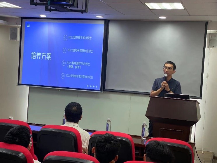 在研究生新生见面会上,副院长李晋斌向学院52名研究生新生表达了祝贺和欢迎,希望同学们尽快适应研究生阶段的学习生活,首先要学会独立思考、主动沟通,独立自主的学习探索是基础,学会团结包容,和导师、同学交流分享、共同攻关是关键,其次做基础学科研究,既要有国际视野,还要有交叉思维,需要开阔眼界、关注国际前沿动态,多和应用研究交叉,不断探索创新,最后要劳逸结合,强健的体魄是做好科研的基础。