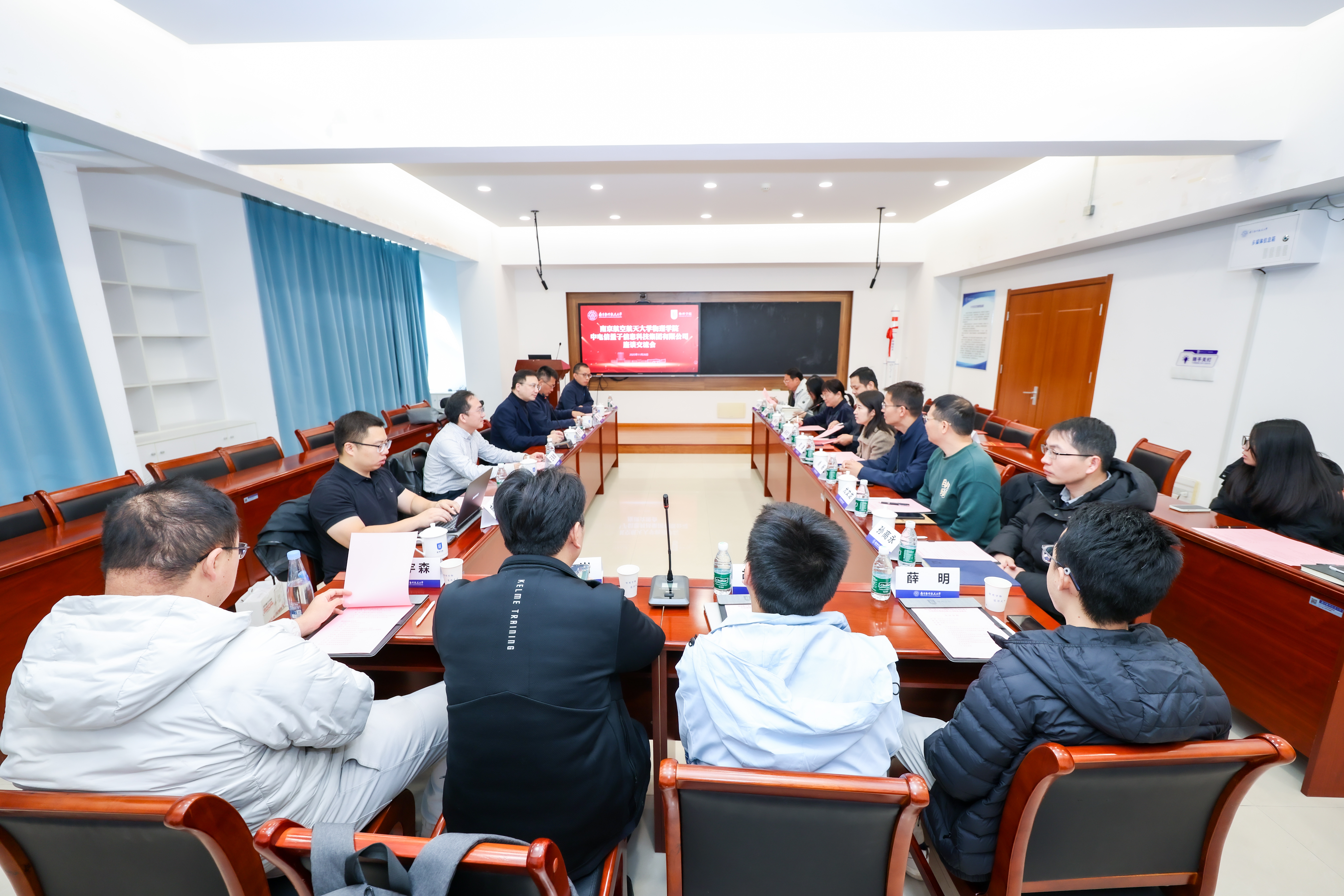 会上,查子龙介绍了中电信量子集团的发展布局,重点阐述了其在量子计算、量子通信等领域的技术优势与国家战略布局下的产业规划。阚彩侠简要介绍了南航52书库 的历史沿革、学科建设及科研方向,重点介绍了学院科研团队在量子信息和量子物理的成果积累与潜在的合作领域。