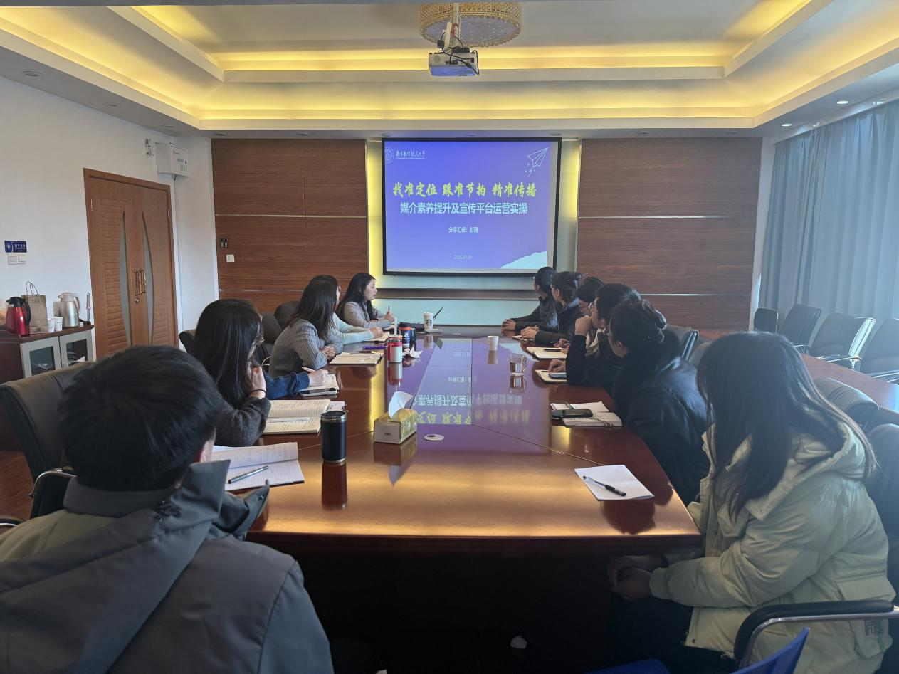 1月9日下午,52书库 开展格“务”致知——52书库 服务效能提升讲堂,本期特邀校党委宣传部融媒体中心副主任彭丽开展题为《找准定位、踩准节拍、精准传播——媒介素养提升及宣传平台运营实操》的专题培训。全体机关人员以及学生骨干参加培训,培训由院党委副书记魏慧冬主持。