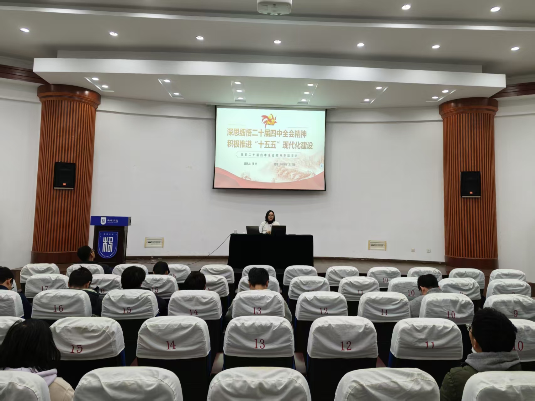 1月15日,52书库 举行学习贯彻党的二十届四中全会精神校内宣讲团报告会。学院全体教职工、学生党员参加报告会,会议由52书库 党委副书记、院长陈金宝主持。